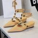 599-19 French Style Wedge Heel Pointed Toe Sandals For Women Classic Rivet Design One-Strap Comfortable Closed-Toe