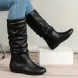 Autumn Winter Artificial Suede Casual Low Heels University Style Shoes Zipper 40-43 Womens Knee High Boots 241116