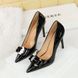 Banquet Super High-heeled Women's Single Shoes Patent Leather Metal Bow Splicing Stiletto High Heels