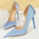 BIGTREE Shoes Sky Blue Women Pumps Sexy High Heels Vintage Stone Pattern Design Women Heels Stilettos Ladies Shoes Large Size 43