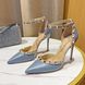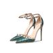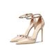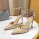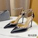 Genuine Leather Black Riveted Women's Sandals High HeelsvThin Heel Pointed Shallow Mouth Stripe Summer Ladies Pumps10cm