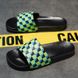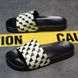 One word drag men's black and white checkerboard large EVA soft bottom beach slippers Slide Slippers
