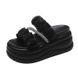 Platform Trendy Summer Women's Round Toe Fairy Style One-Strap Sandals Fashionable Rhinestone Wedge Slippers