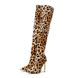 Command attention with these leopard print stiletto boots—designed for the bold and confident. The stretchy slip-on design hugs your feet comfortably, while the pointed toe and sleek heel elongate your silhouette effortlessly.