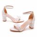 Women’s Shoes 7cm thick heel sandals shallow mouth one strap square heel buckle sandals white lace bride wedding shoes high heels
