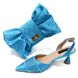 Women's Bright Colored Shoe And Bag Set Summer High Heeled Pointed Sandals With Color Blocked Rhinestones And Butterfly Shaped Bags