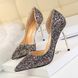 Step into the spotlight with these dazzling stiletto heels, designed to make you shine at any evening event. The sleek pointed toe and flattering cut-out details create an effortlessly elegant silhouette, while the shimmering glitter fabric adds a touch of glamour.