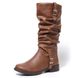 Women's High-Cowboy Boots Slip-On Wrinkle Stacked Western Riding Boots With Chunky Heel And Studded Details Cowboy Riding Boots