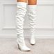 Women's Knee-High Faux Leather Pointed Toe Stiletto Boots With Side Zipper, Wrinkle Detail, 8cm Heel (Black/Red/Beige/White, Sizes 35-42)