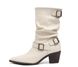 Women's Retro French Style Pointed Toe Chunky Heel Boots With Belt Buckle Detail, Stacked Mid-Calf Boots For Winter Sizes 35-40 Mid Tube Stacked Boots