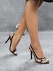Women's Transparent Glass Plastic Side Wrap Back Trip Strap Round Toe Stiletto Sandals Party Sexy Heels
